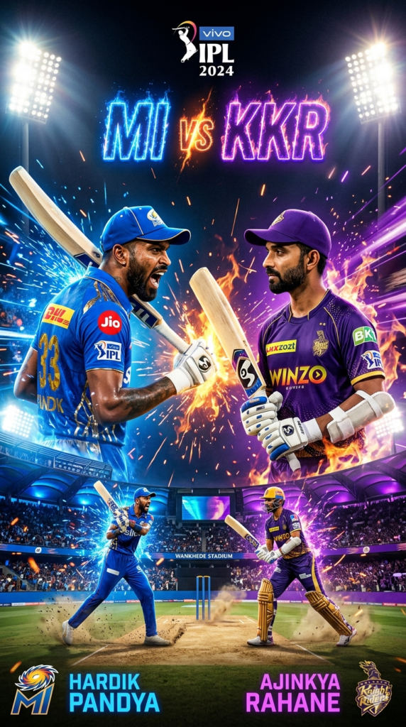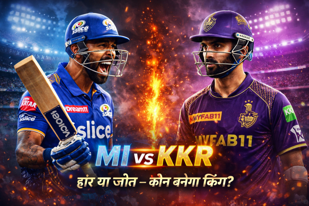 IPL 2026 में आज का मुकाबला रहा बेहद रोमांचक, जहां Kolkata Knight Riders (KKR) और Mumbai Indians (MI) आमने-सामने थे। यह मैच सिर्फ एक जीत-हार नहीं बल्कि रणनीति, दबाव और बड़े खिलाड़ियों के प्रदर्शन की कहानी बन गया।